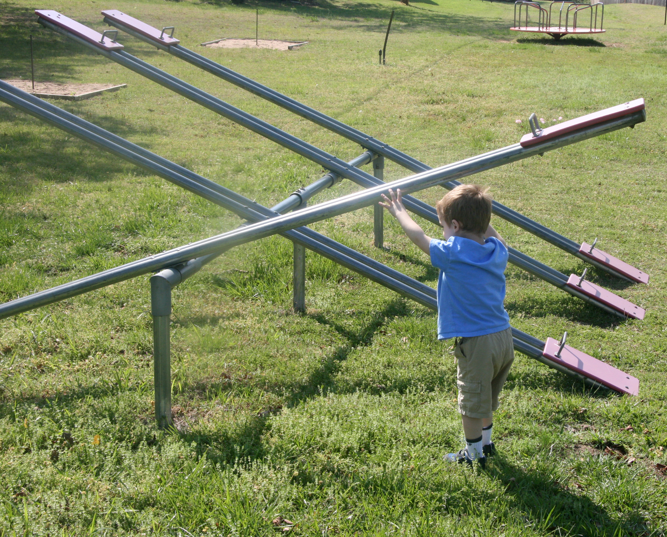 There are also see-saws! Unfortunately there wasn’t anyone around to provide more of an equal weight offset to the 37 pound child.