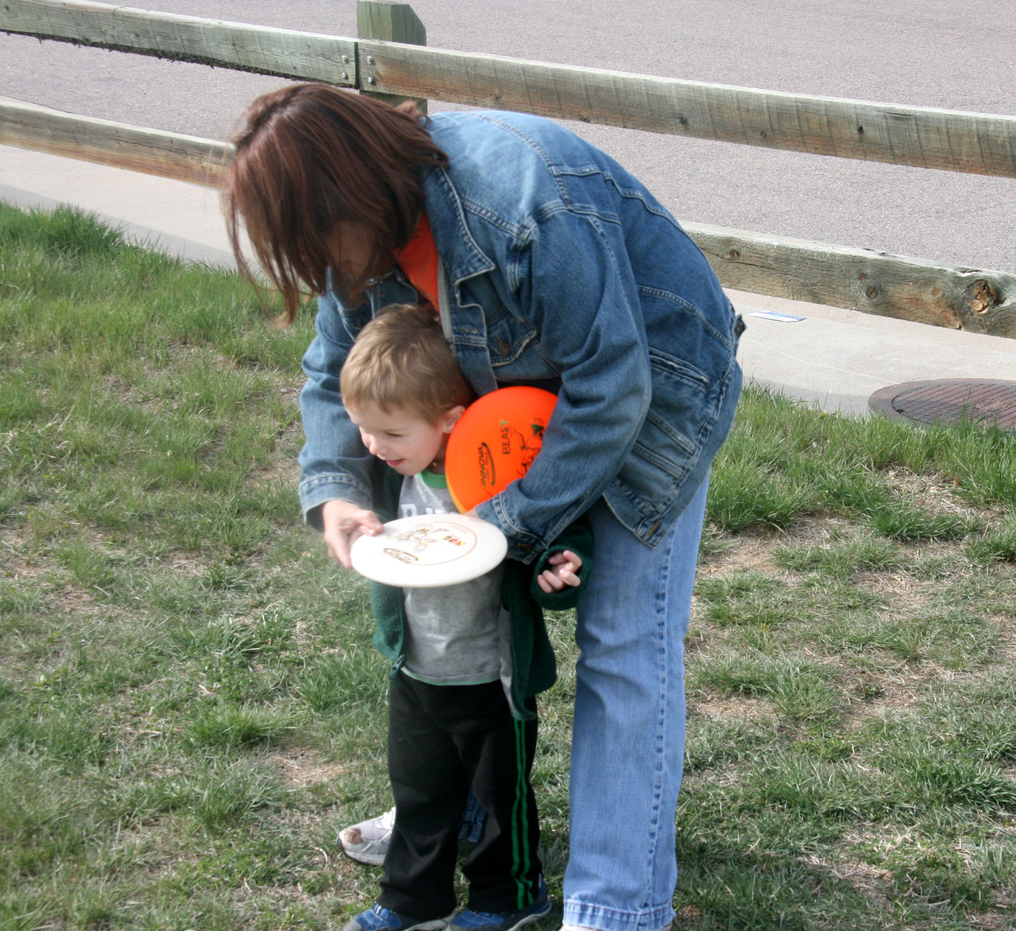 We went out and I showed him how to throw it. However, I am not exactly the most experienced or capable frisbee thrower – not the best frisbee throwing teacher.