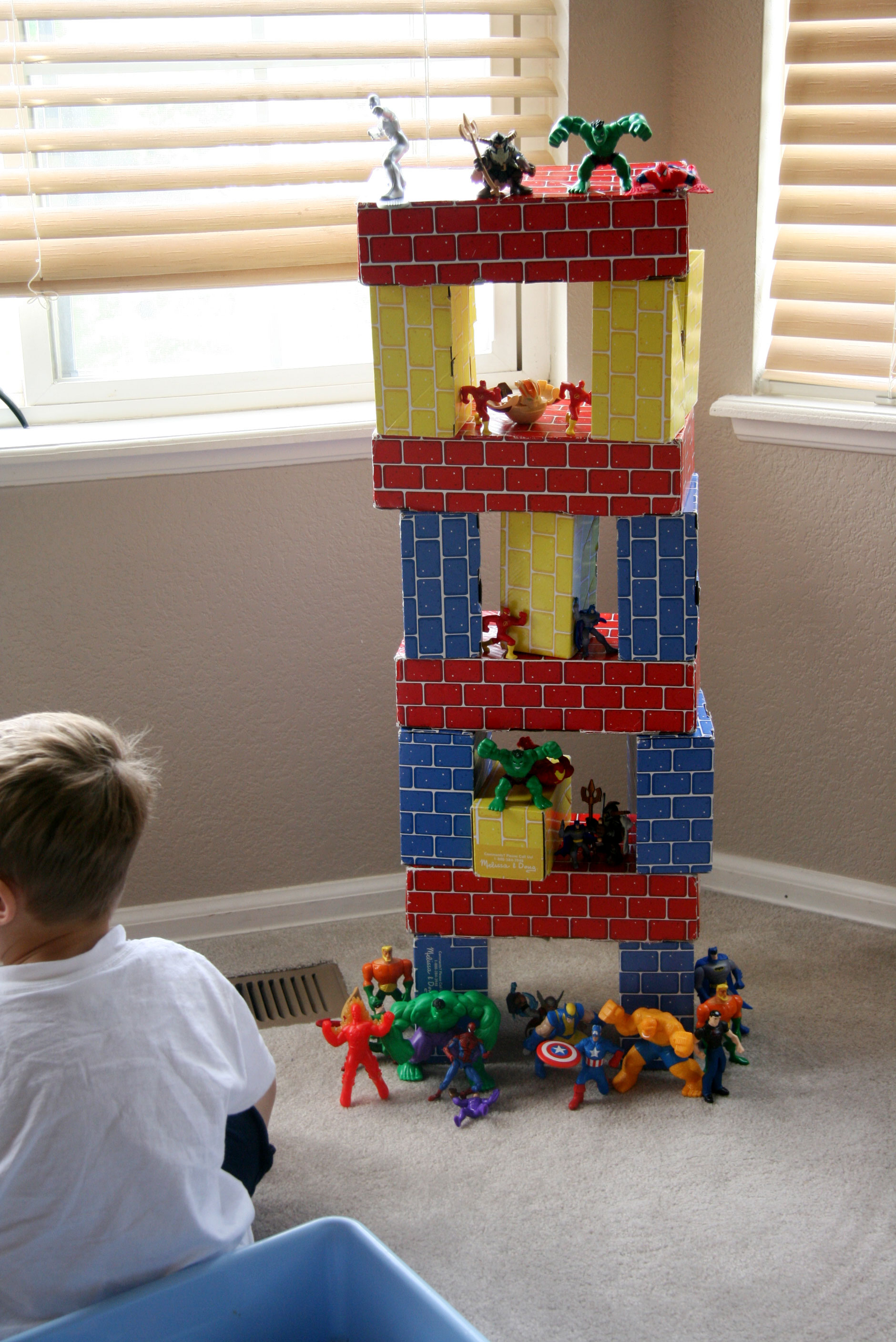 Here he’s safely perched on the porch. I gave him some gummy bears to pass the time while he watched (It kept him safely on the porch as well).
