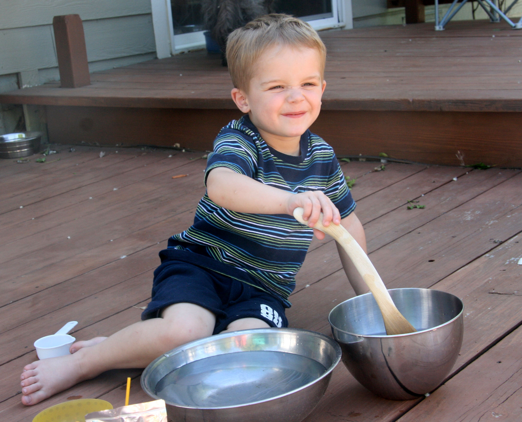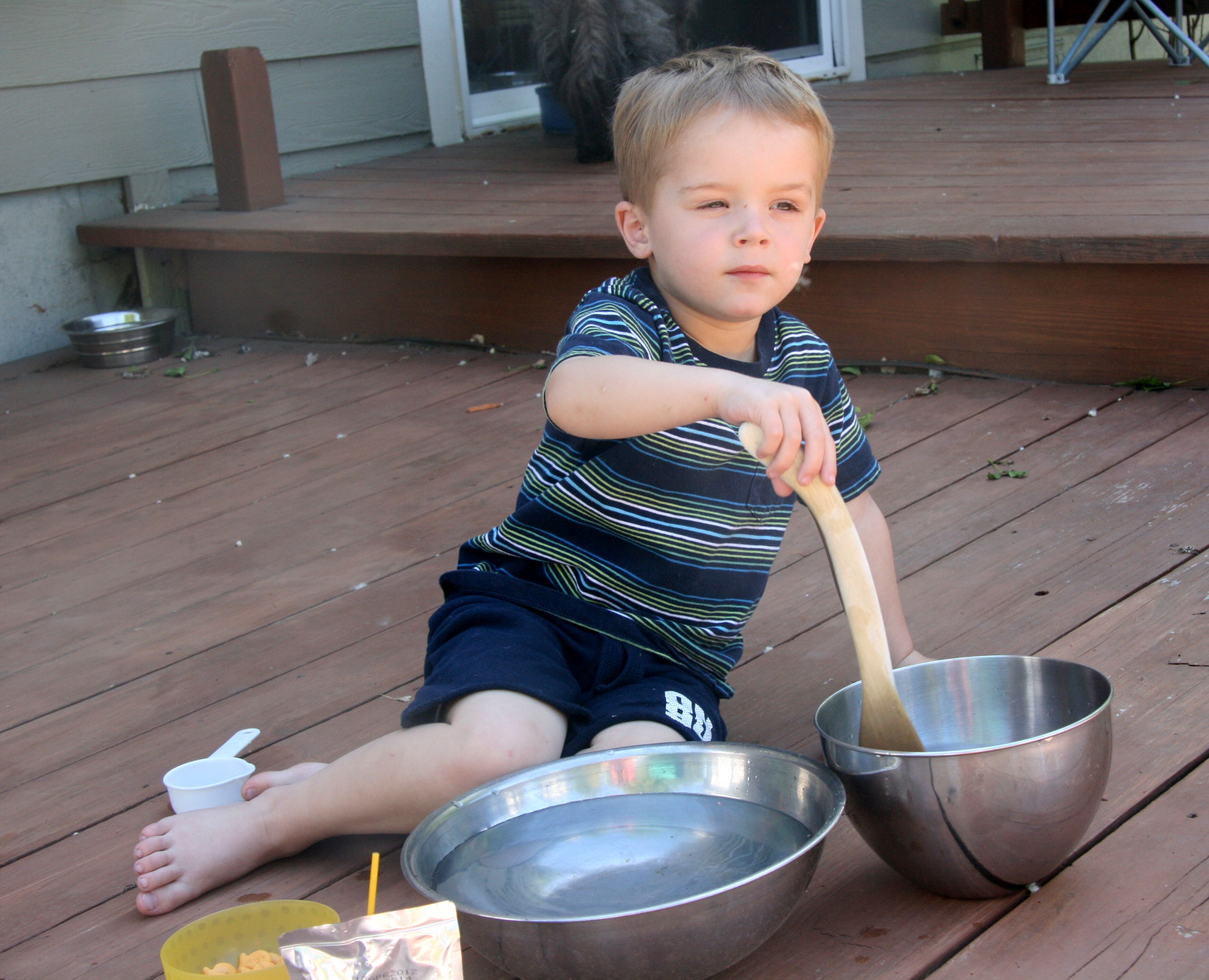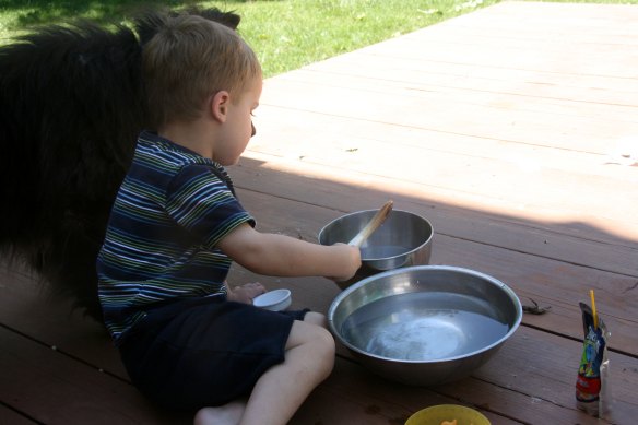 It’s getting warm in Colorado too! Davey and I spent some time outside this afternoon. He got out the bowls and water.