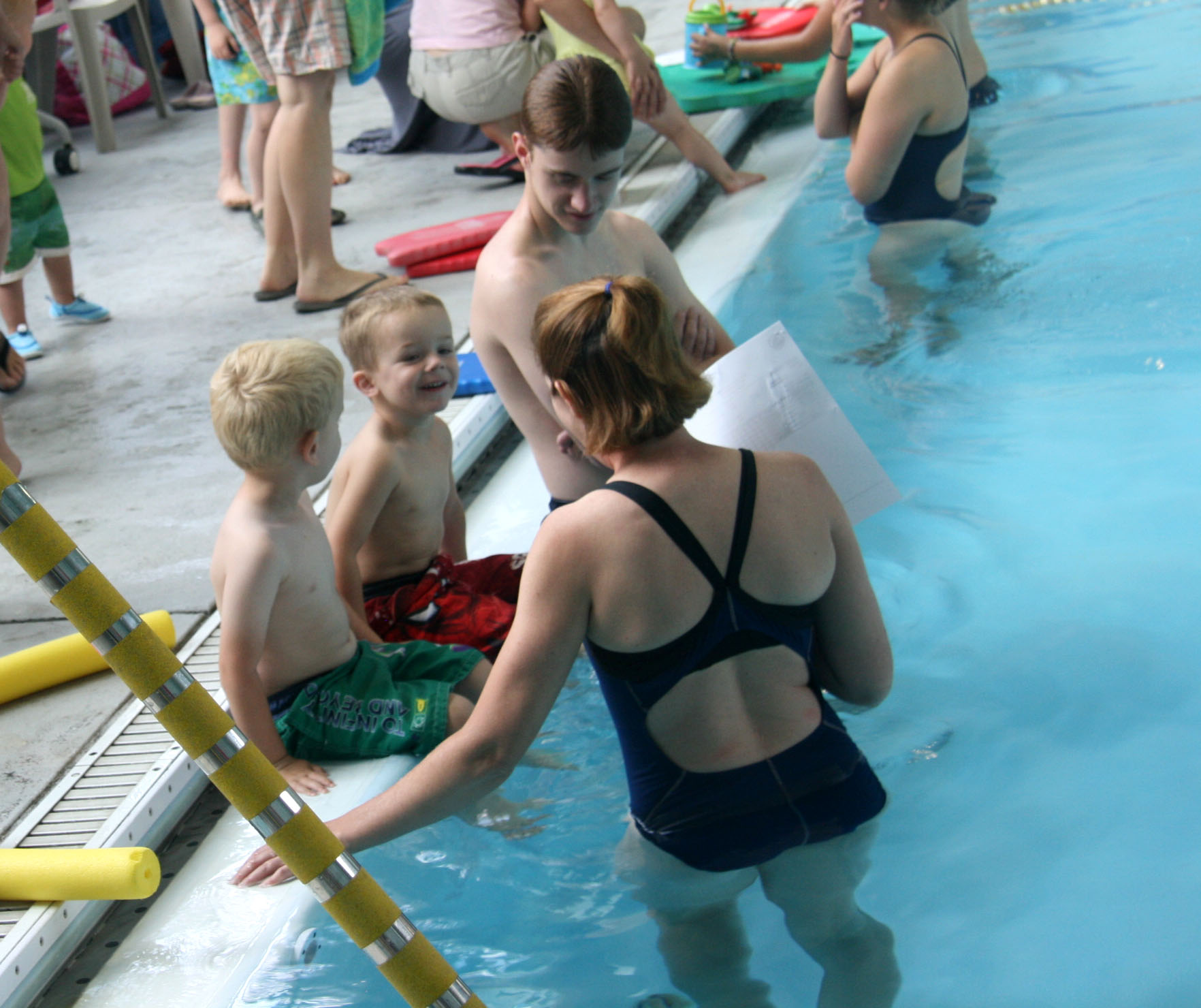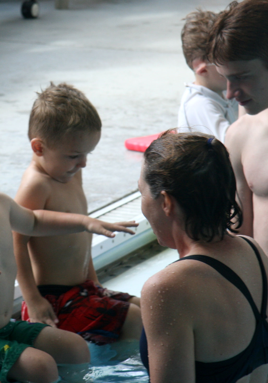 Fortunately, at least two days into lessons, there has been no suggestion of putting his face in the water. It’s been all about getting comfortable in the water.