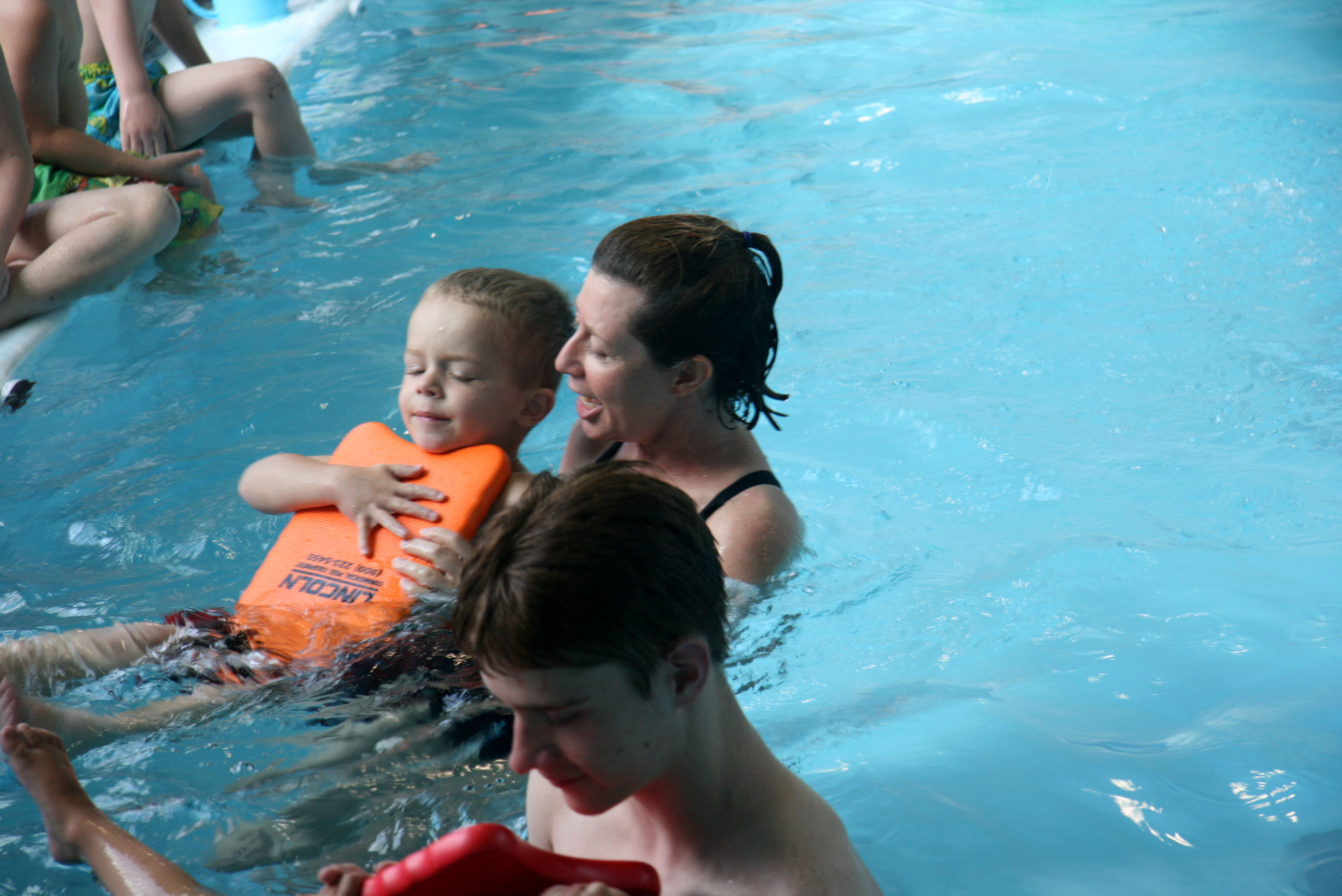 Neither one of my girls liked putting face into water, but eventually they both surrendered to the inevitability of it… and then the swimming lessons went beautifully. It looks Davey is already getting into the fun of it, that will help a lot that he nows has a positive experience with the lessons.