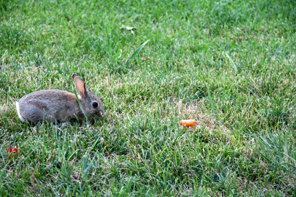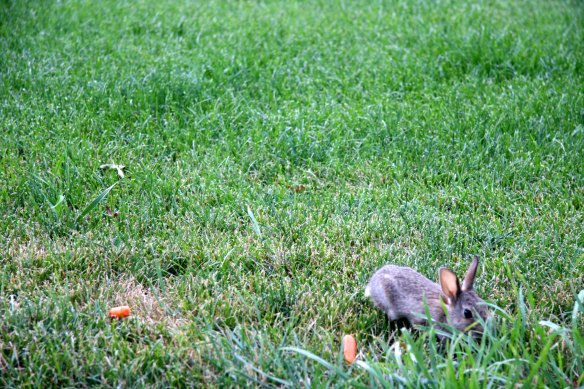 Apparently, the bunny was not acquainted with carrots.  I tried to tell Davey that he would sniff out them out and recognize them as bunny food, but Winkie seemed to prefer the blades of grass.