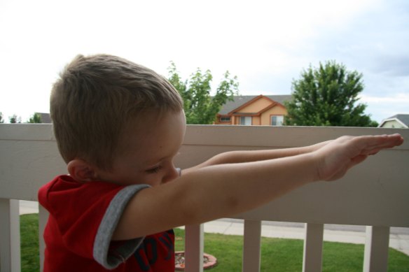 Then he decided that he wanted David to come back outside with us, so he went and rang the doorbell.  Many times.