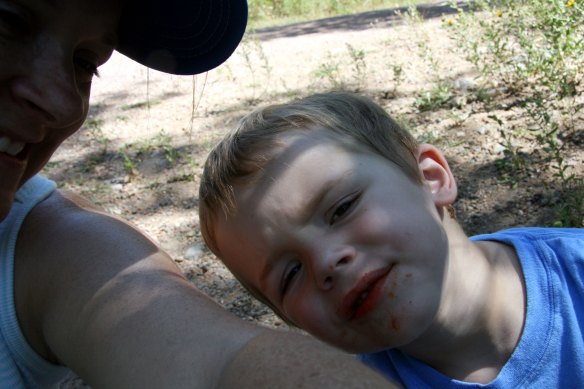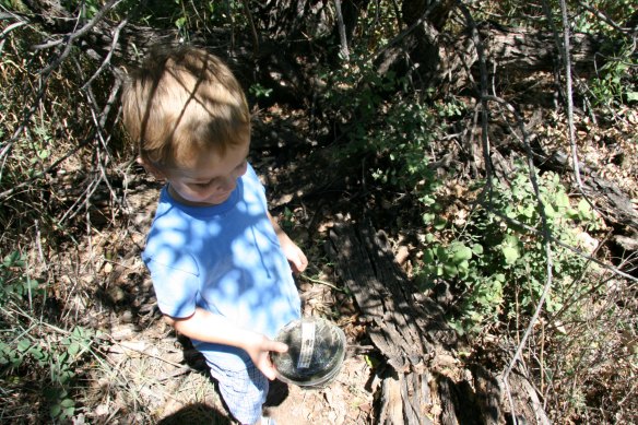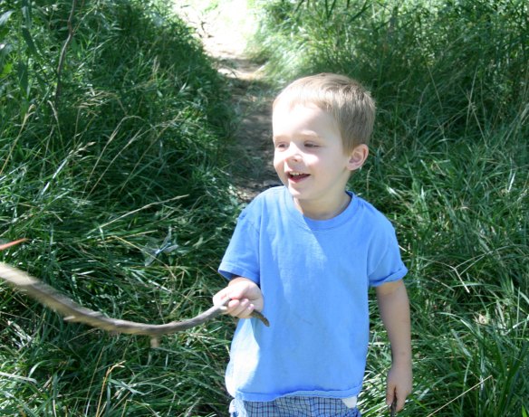 The enthusiasm of little boys … can’t beat that — even with a stick that looks a whole lot like a snake. Glad he had a great time out in the “wilderness”.