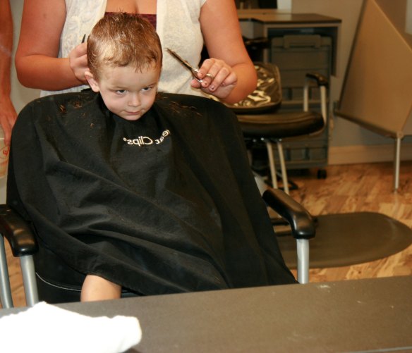 He was so proud after his haircut. We’d put the camera away by then, but I wish I had taken a picture. He was looking around as he walked out, just a grinning away. Pleased as punch.