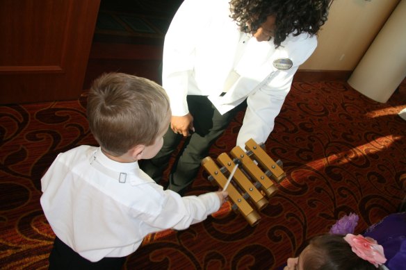 Before the dancing we had dinner, and the nice lady let him use the mallet on the keys to announce that dinner was beginning. Davey thought this was pretty darn cool.