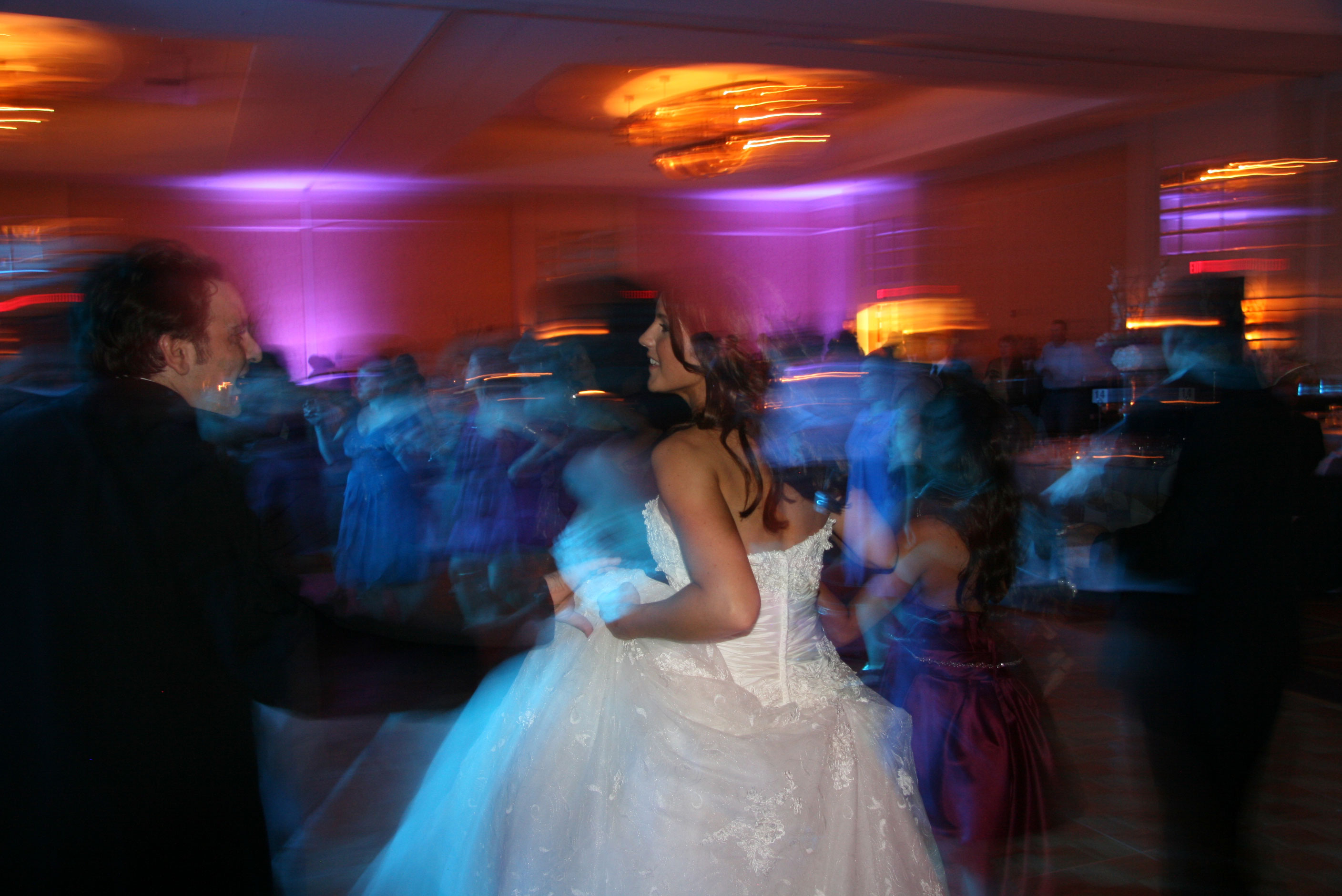 We watched the bride and groom start off the dancing. It was dark so the photography was a challenge. But David got some cool looking pics.
