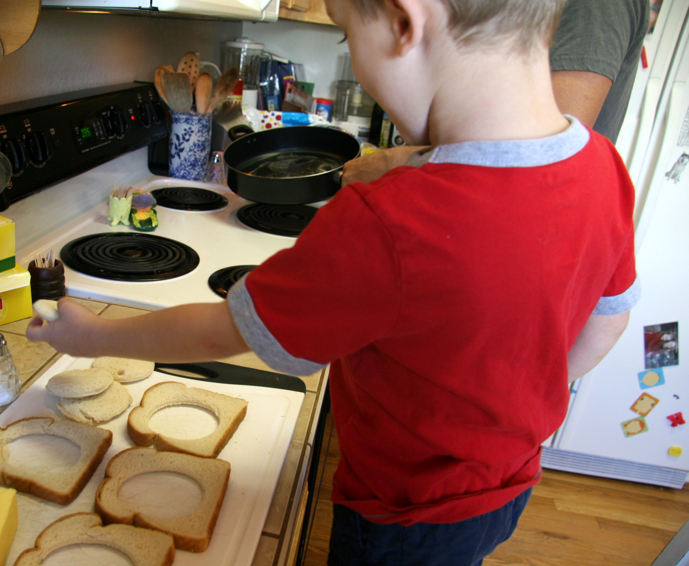 David has started making us eggs in a hole (we were inspired by the Pioneer Woman Show.) Davey loves to help.