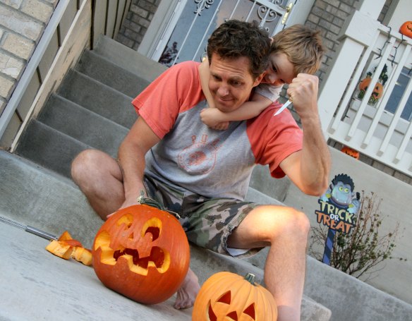 Then it was time for the annual slightly violent “stab the jack o’lantern” photo.