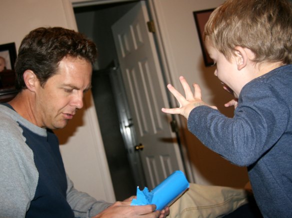 Davey wanted Daddy to open it immediately when he got home (early birthday present). So he did. Davey was so excited.