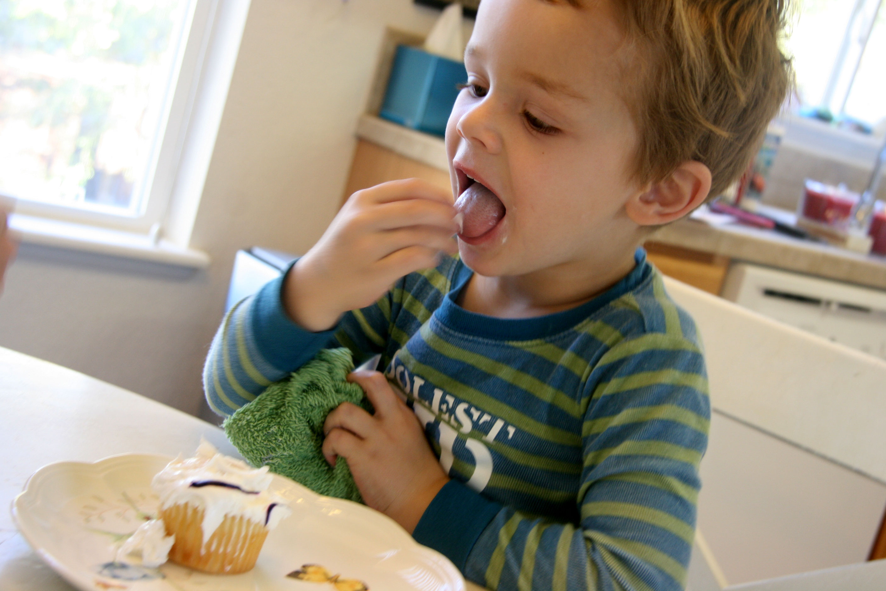 And of course he loves to lick the icing off the cupcake (and to not eat the cupcake).