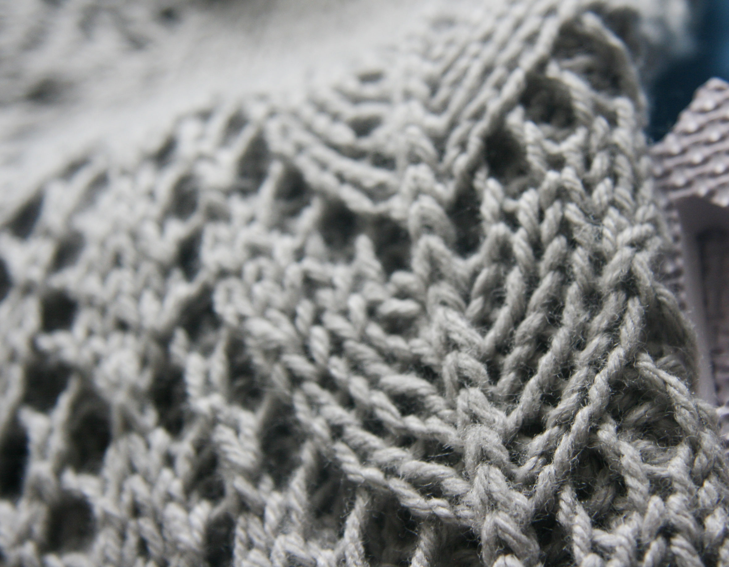 Then there was the shawl.  The grey shawl.  I loved (still do) the idea of a lace shawl out of a bulky weight yarn.  We used Knit Picks yarn for this, and I really like this grey color.