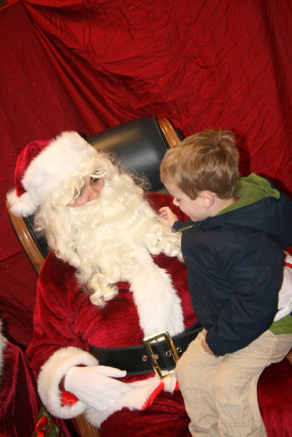 He said, “I think Santa will remember me from the other day!” (He had spoken with Santa just a few days earlier at Walmart.) But then, he thought about it, and he said, “but I’m not sure that was the REAL Santa.”