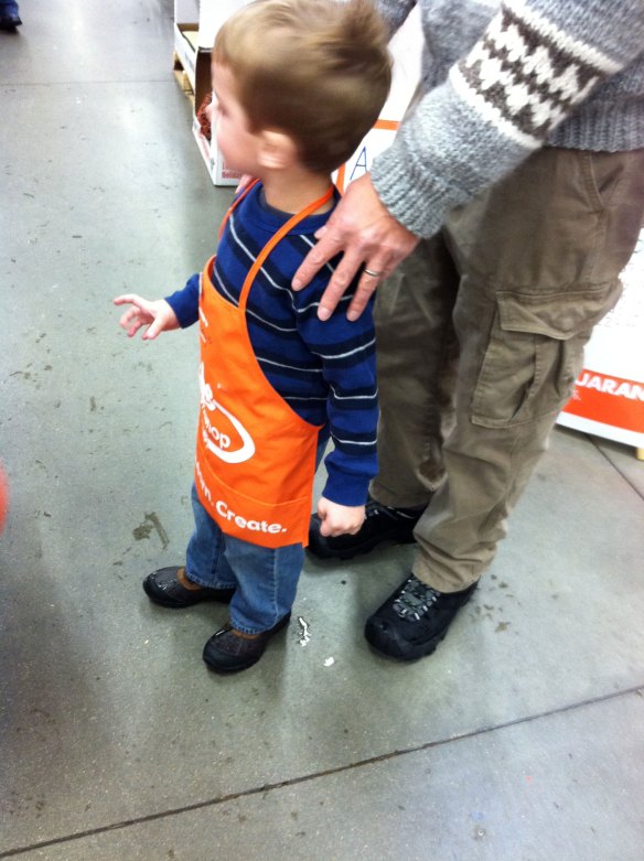 Home Depot has the Kid Workshops the first Saturday of each month. We went for the first time in November. Davey got an apron which he thought was just the coolest.