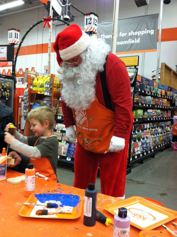 Home Depot Santa. Davey has talked to about 4 Santas so far now, but he was feeling a little bashful on this day. He didn’t want to engage with Home Depot Santa.