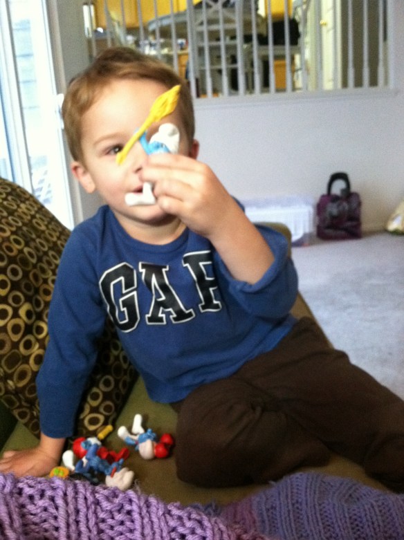 He just asked me if he could have some gummy bear fruit snack things. He told me though that I can’t have any because, “Mommy, you are kind of sick. You can’t have any gummies because you need to eat healthy things”. He gave me one of his and said that was all I could have.