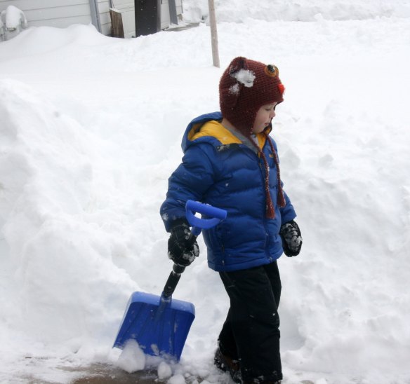 Davey wanted to help David shovel this morning. The timing of the snowfall required that the driveway and sidewalk be shoveled yesterday morning and again this morning.