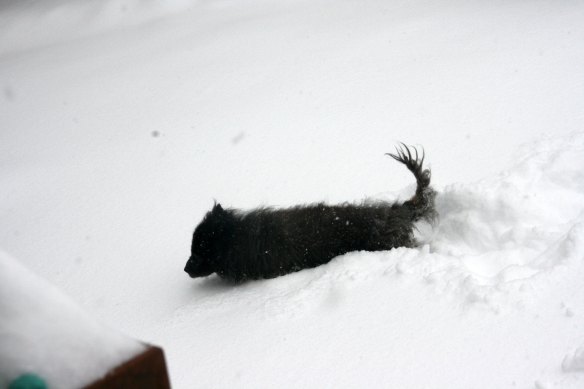 Koko had to “swim” through the snow. David cleared out a path for her. I was afraid the effort of her trying to get through snow might be too hard on her old heart (of course given her rather stubborn nature, she had to venture off the cleared path anyway).