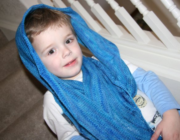 I finished the 3rd cowl in the knit along yesterday. I like it a lot. It wraps around my neck three times and is so is nice and comfy and warm.