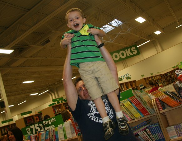 So we handed off our number to someone who had number of 500+, and off we went.  It was fun though.  We’d not been to a book signing before, and this was a really neat huge bookstore with all kinds of stuff.  Davey and David spent quite abit of time with comic books and action figures.