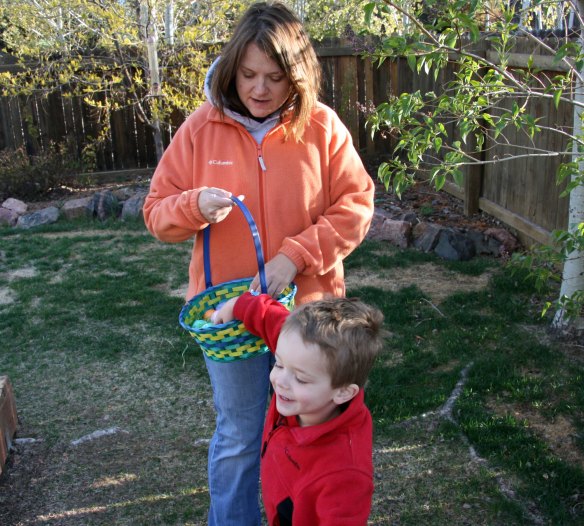 Sunday morning, Davey opened up his Easter basket, and then it was time to hunt eggs. And hunt them again. And hunt them again. Today, he hid them all and hunted them again. Then David hid them once more.