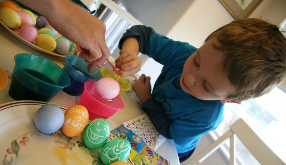 Once we got home, we dyed Easter eggs. I think this was the first time, we’d dyed eggs with Davey. It was a lot of fun. It had been a lonnngggg time since I’d dyed an egg.