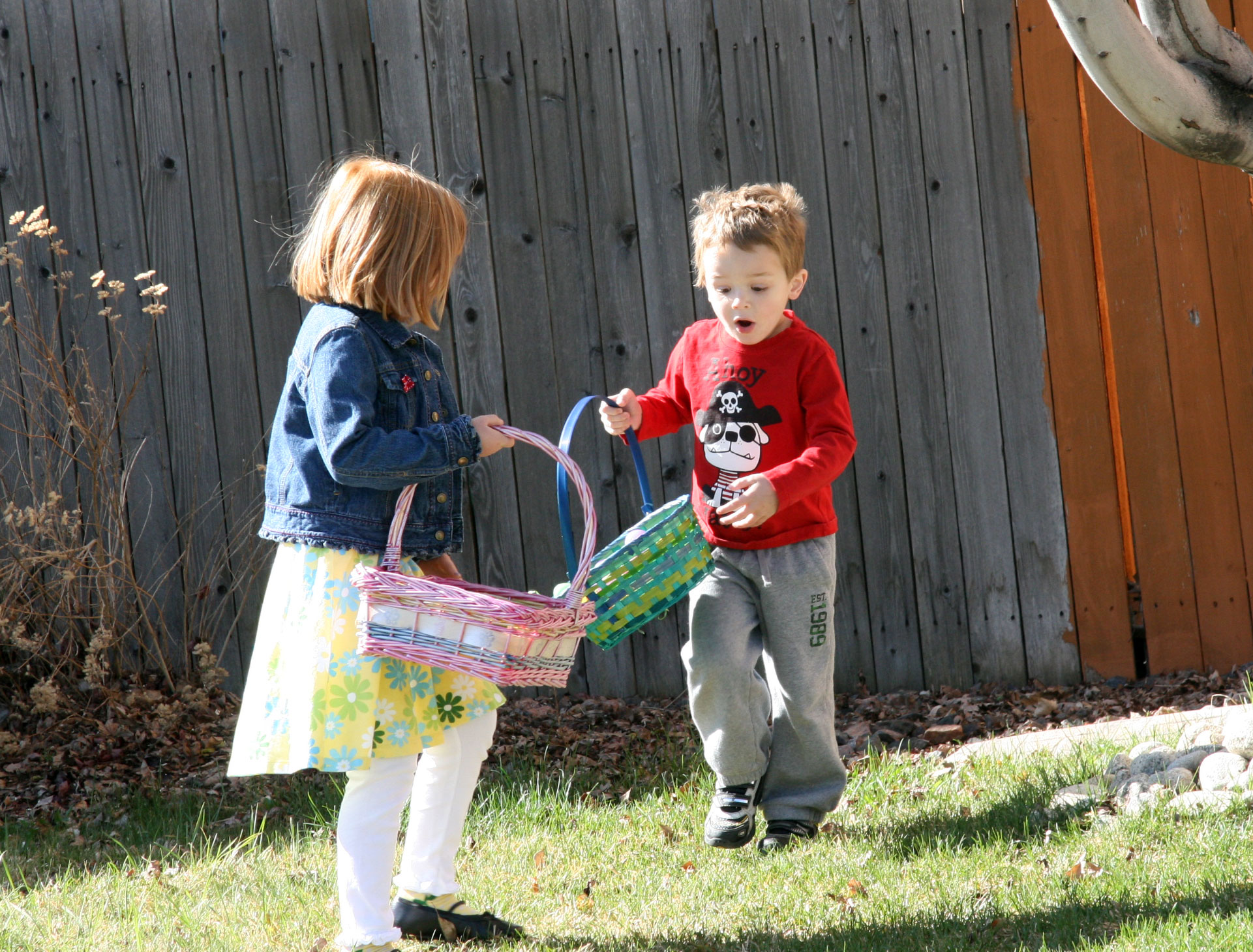 We also got to hunt with the little girls across the street. This was Davey’s typical pose as he made his way from egg to egg.