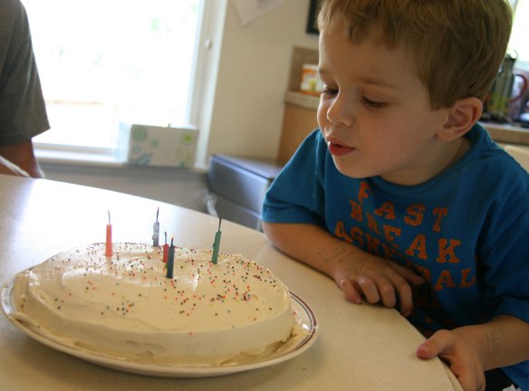 Later it was time for cake. He wanted cupcakes and a cake, so I made a single layer cake. It’s pretty plain but it was good. I bought a premade one last year, but I really like home made better. Well not totally homemade. I made the icing but used a cake mix. And I guess that worked out well, because Davey just eats the icing anyway. (The sprinkles were also a specific request!)