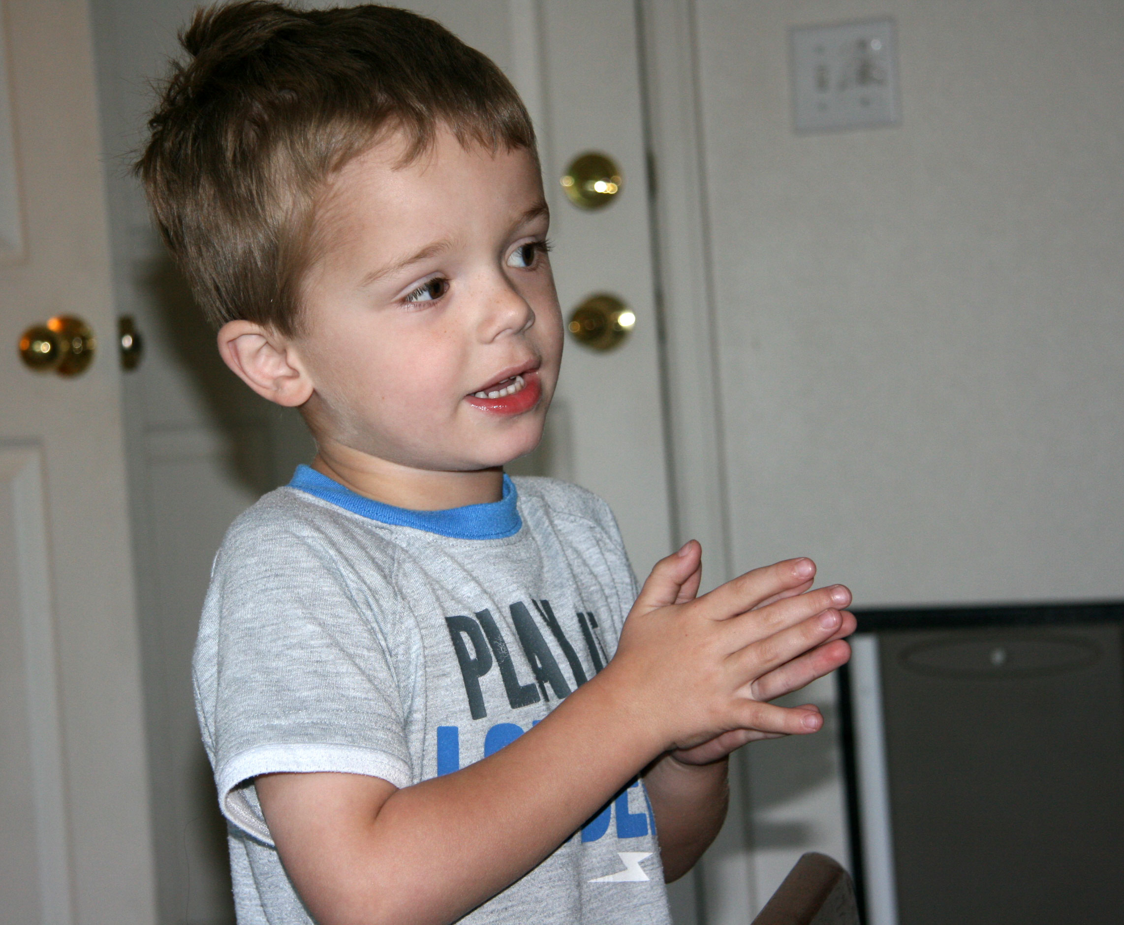 Yesterday Davey turned 4 and 1/2. We had a small celebration. He’d asked for another addition to his “village”. He kept asking about it. So he was pretty happy to come down the stairs and see that he did indeed get what he’d requested. This is not a great picture, but you can see the smile and the “yay! I was hoping for that present” look.