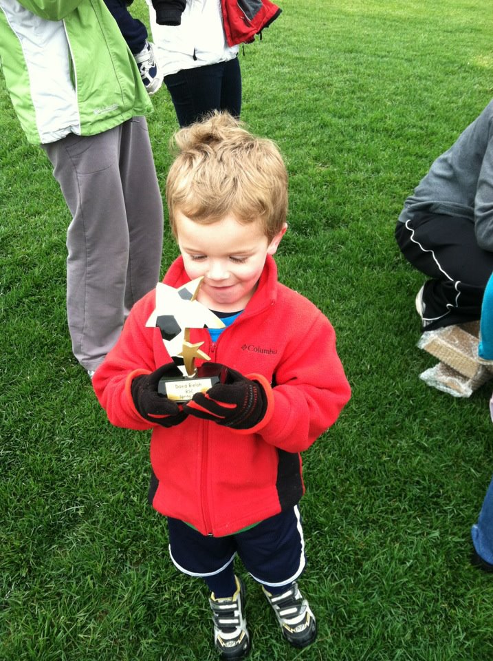 This morning was Davey’s last soccer practice/game.  It was really cold out though.  Still is!  40 degrees, but there was no wind so it wan’t too miserable.  I think he liked the cool air.  He is so hot-natured that maybe it invigorated him.  He scored a couple of goals!