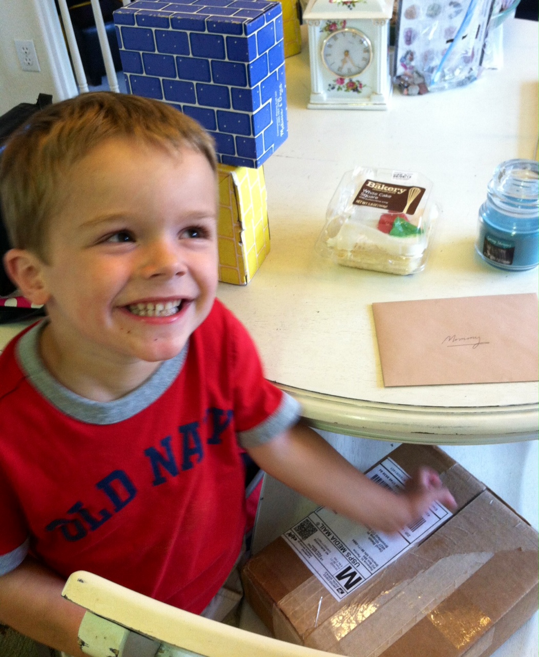 Davey has been wanting to have what he refers to as a “love party” for me for awhile now. He kept telling David: “We need flowers, a present, cake, a card and decorations.” So the other day when I got home from work, Davey (and David) had it all ready.