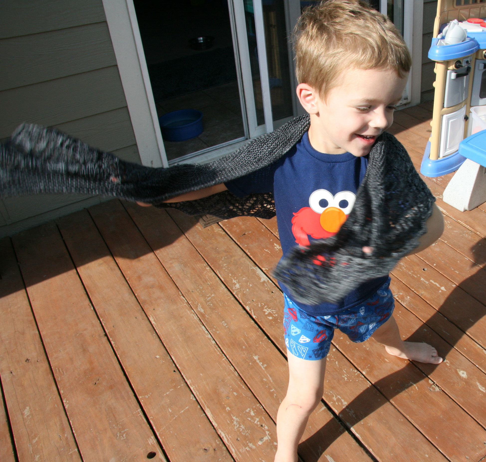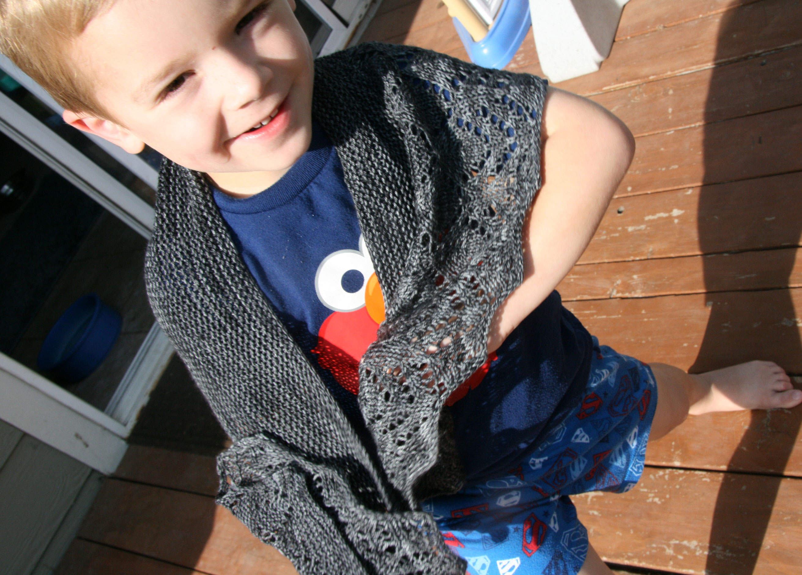 Elmo looks quite happy to be modeling your beautiful new shawl.