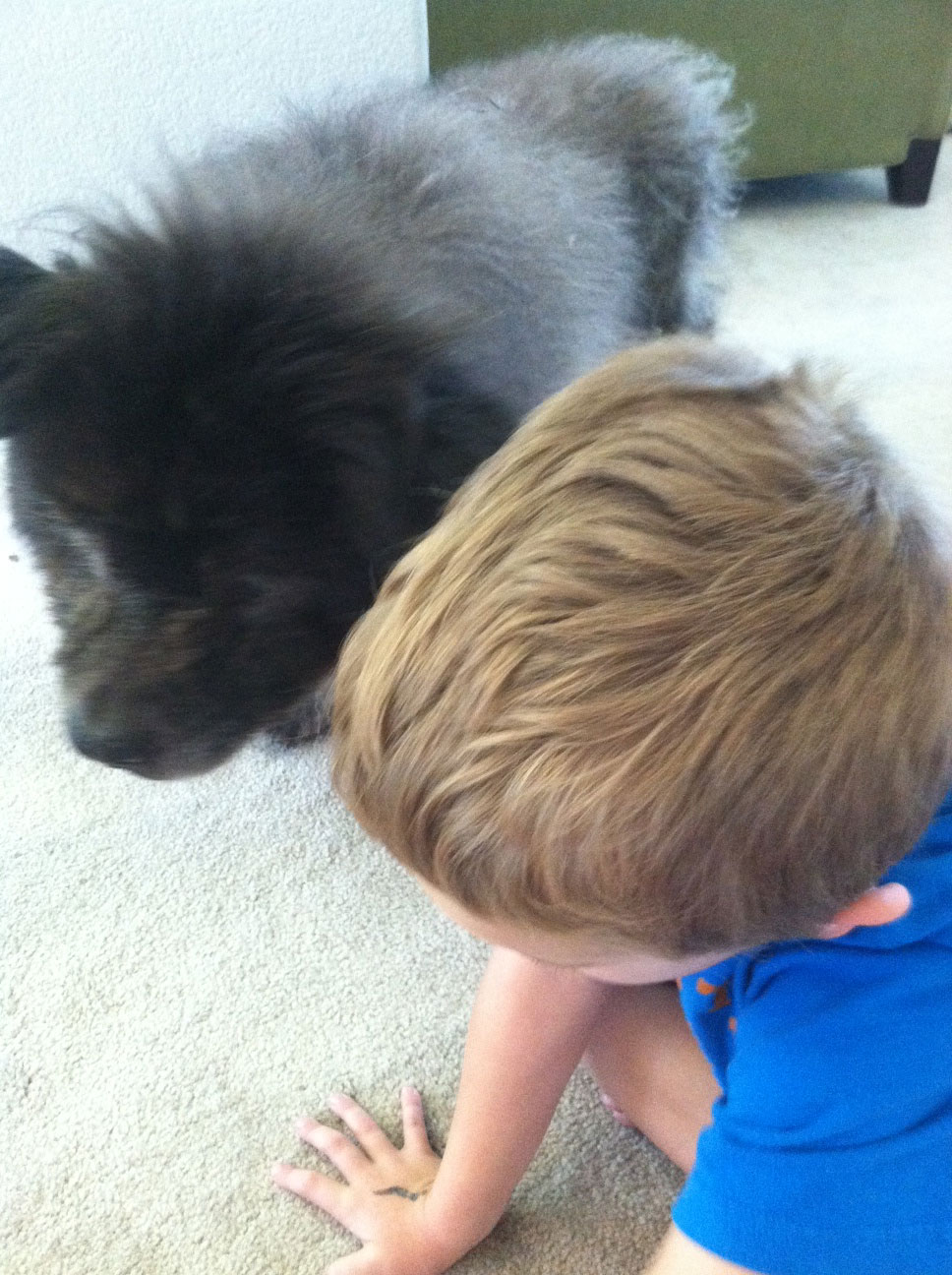 And finally, I wanted to blog about Koko puff. We’ve been taking her out for walks again for the last couple of nights. Last night, when I showed her the leash, we saw a glimmer of the old Koko. She got all excited and kept biting at the leash like she did for years when we were getting ready for a walk. Poor thing. She loved it. We just worried about her back legs which barely work, but we basically just walked about 4 houses down and then turned around. She did lots of “smells”, as Davey calls it, and we walked very very very slowly. So we’ll definitely keep doing that. Davey loves to “walk” her.