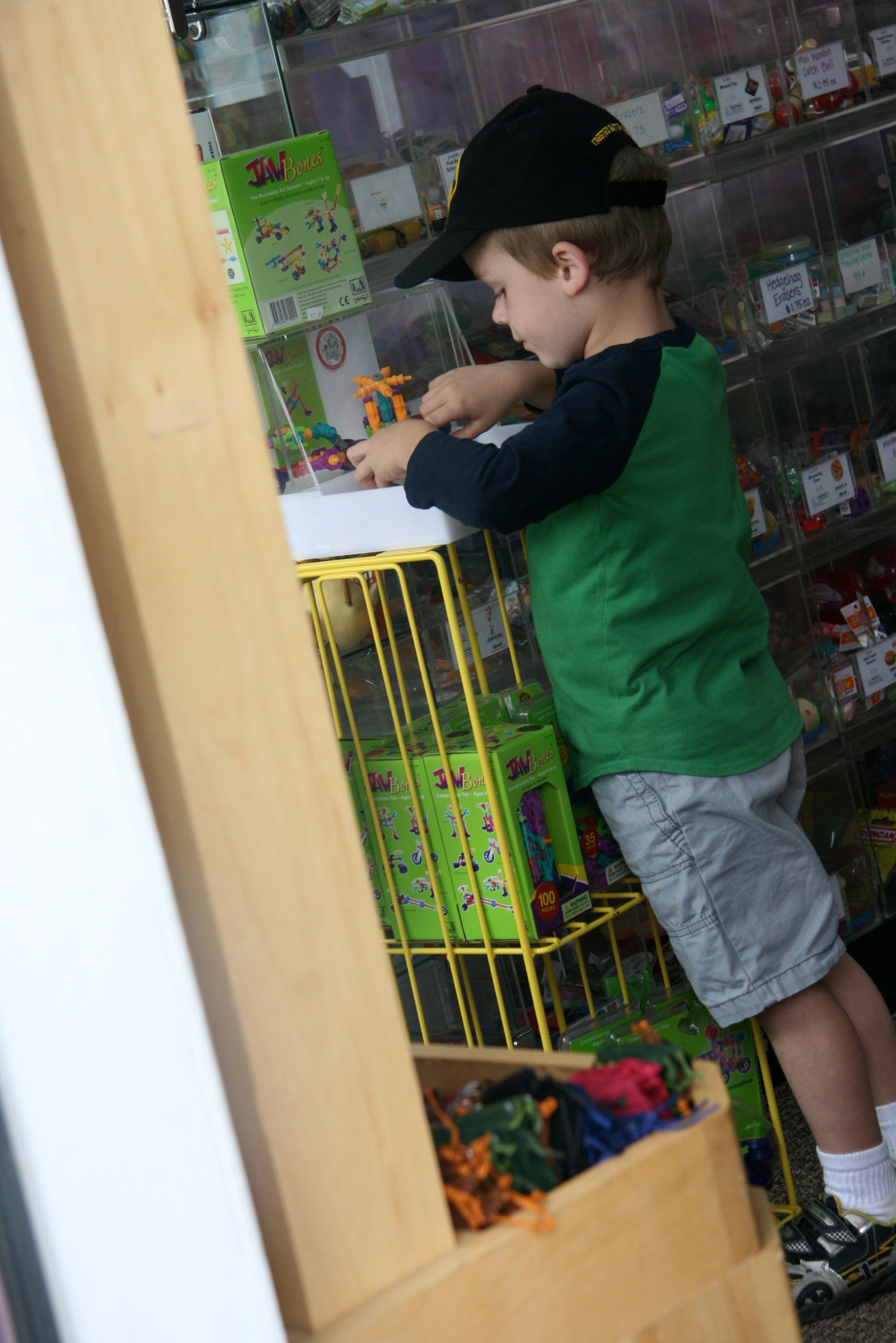 He went back to the toy store. In this picture he is playing with some building toys called Jawbones. We got him some and he has really enjoyed building with them. He and David have built several things since we got home. There are wheels and hingy type pieces. Really neat.