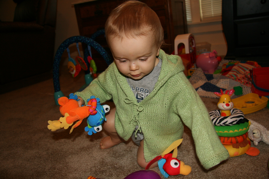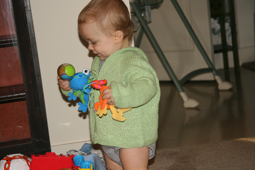 This is actually the second time that I made this cardigan. I started knitting again when Davey was about a year old. I made a scarf or two, then some houseshoes, and then I decided I wanted to knit Davey a sweater.
