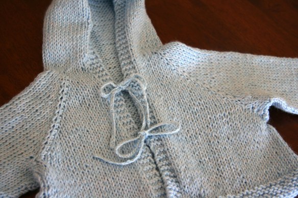 I just finished knitting a sweet little baby cardigan for a friend of mine. She’s expecting a little boy, and I am so excited for her.