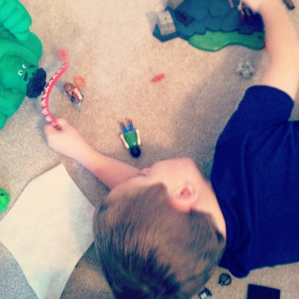 So while I’ve been writing about recipes, Davey has been playing away! He’s immersed in a scenario which I think involves a snake attacking a camp.