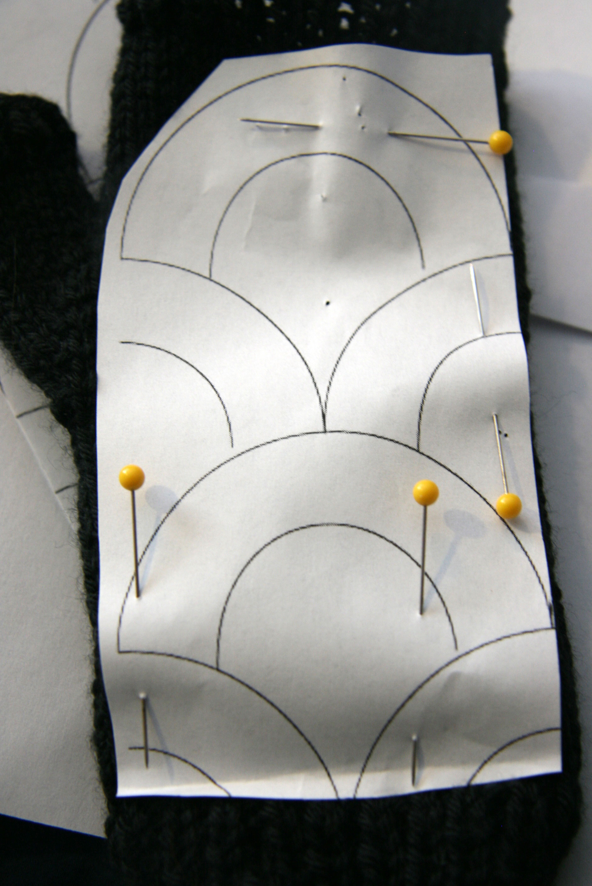 Sashiko is a type of Japanese running stitch. So first I used my paper template as I had done in the past.