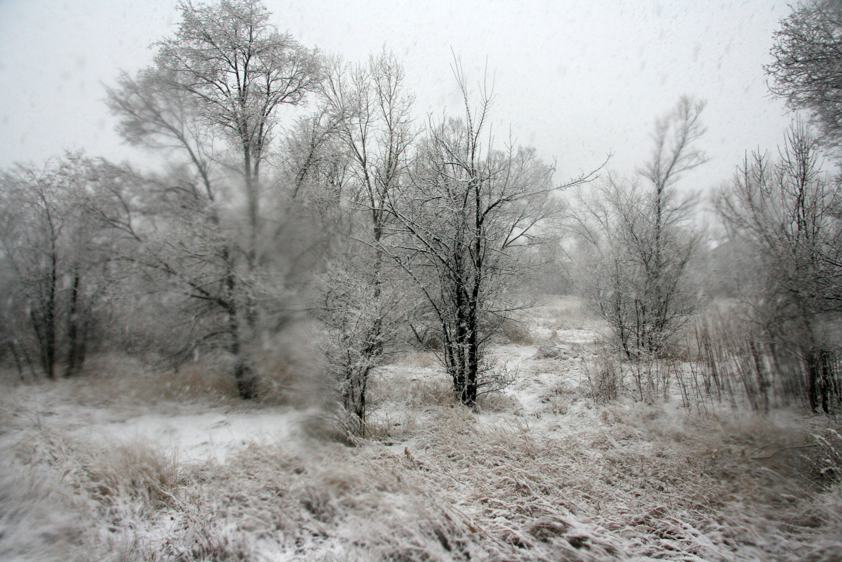 I wanted to try to take a picture of the landscape, but it was snowing so hard that my camera was getting wet. So the result is a nice blur in the picture. I kind of like the way it looks though.