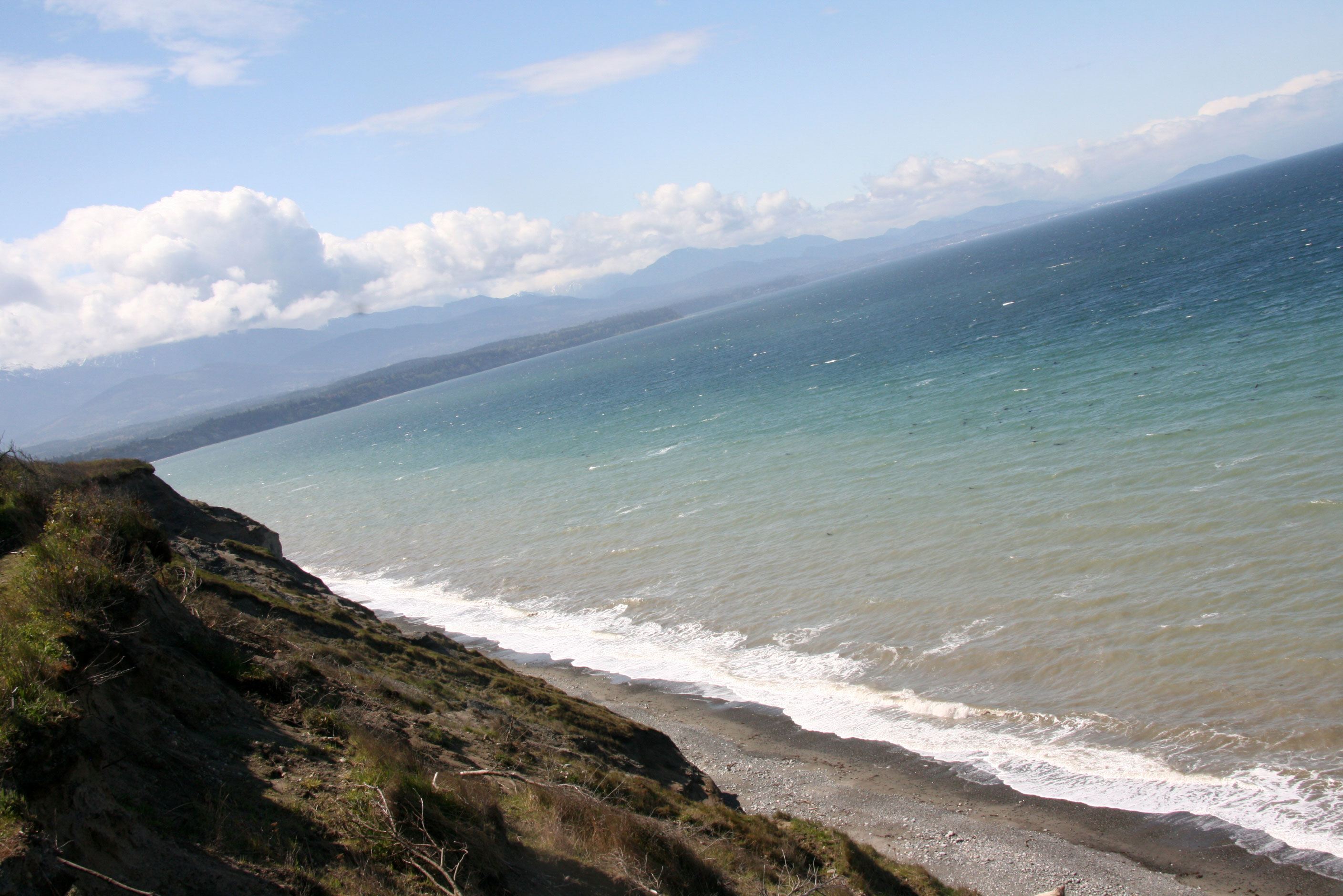 The Dungeness Spit is a long stretch “spit” of land that extends 5.5 miles. It’s the longest natural spit in the United States. It’s like a long finger of land. Here’s a picture I took that gives a little bit of an idea. It extends on around the edge for another several miles.