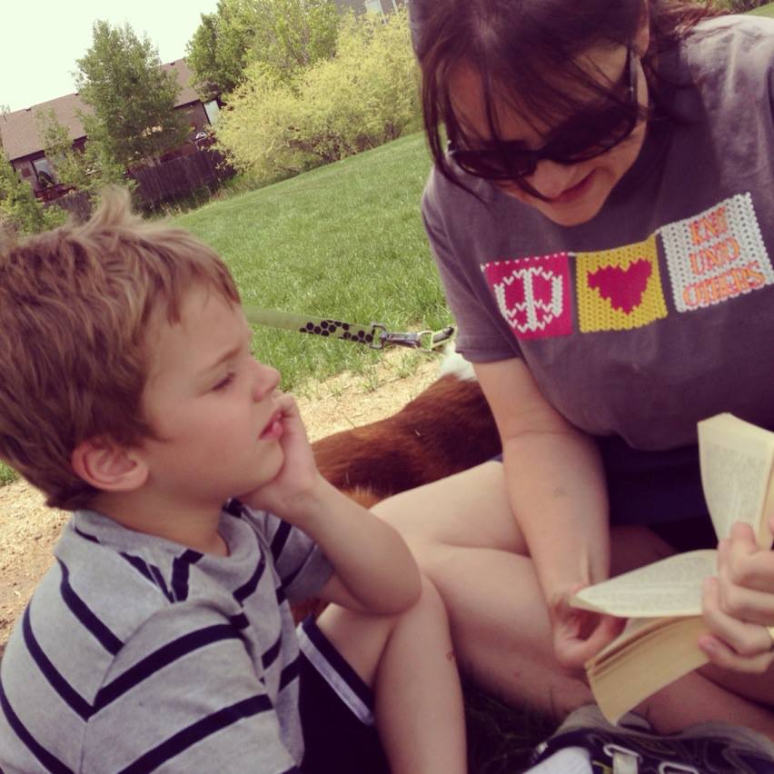 After lunch today, we came back to the park by our house to read in the shade for abit.  David, Davey and I have started reading Harry Potter.  It’s our first book together without pictures!  Davey was not too interested in books without pictures yet, but then he started playing Lego Harry Potter on the Wii, and it has gotten him very interested in the story of Harry Potter.