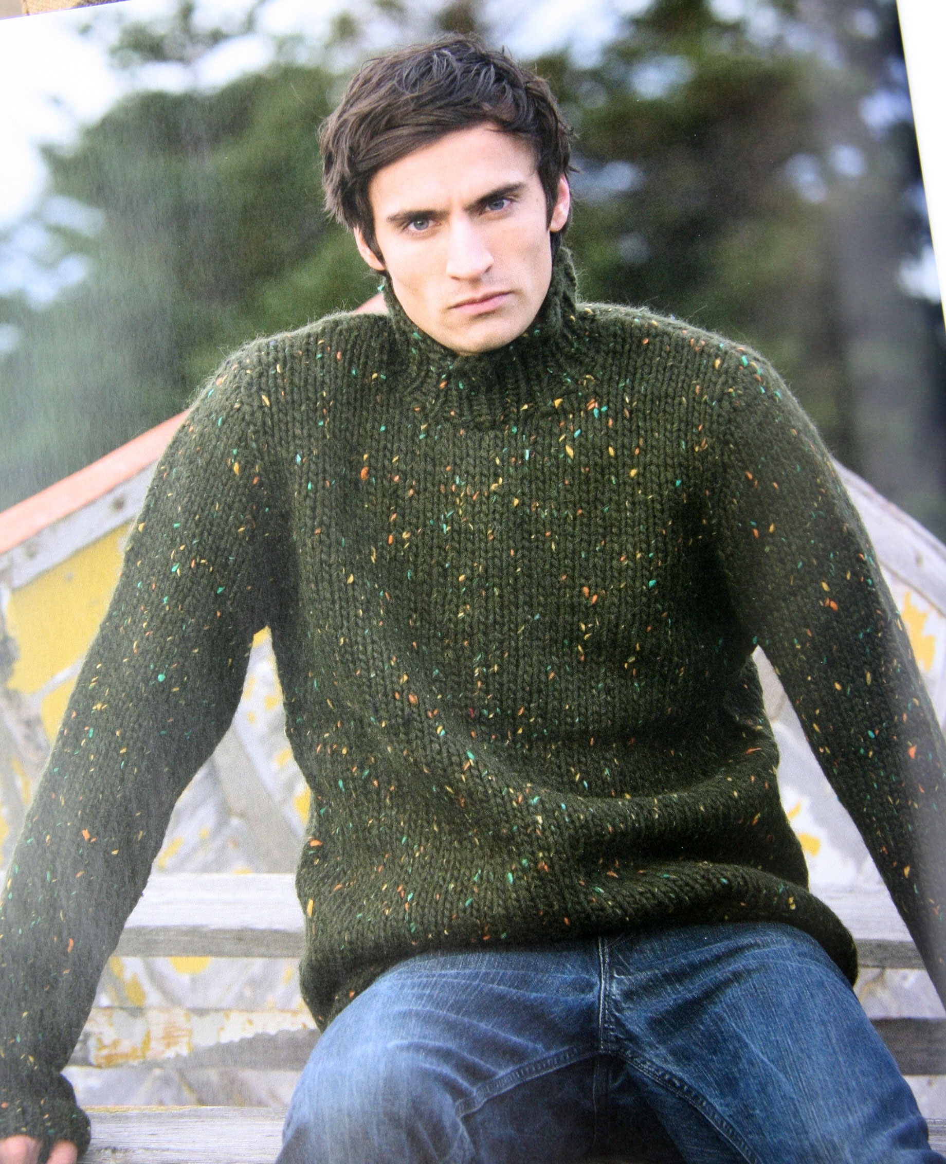 I like that there is cabling on the front and on the sleeves as well! This model makes me laugh too. So intense. He doesn’t look too happy. I’m not that into the next sweater, but it’s the model again. He scares me a little in this picture.