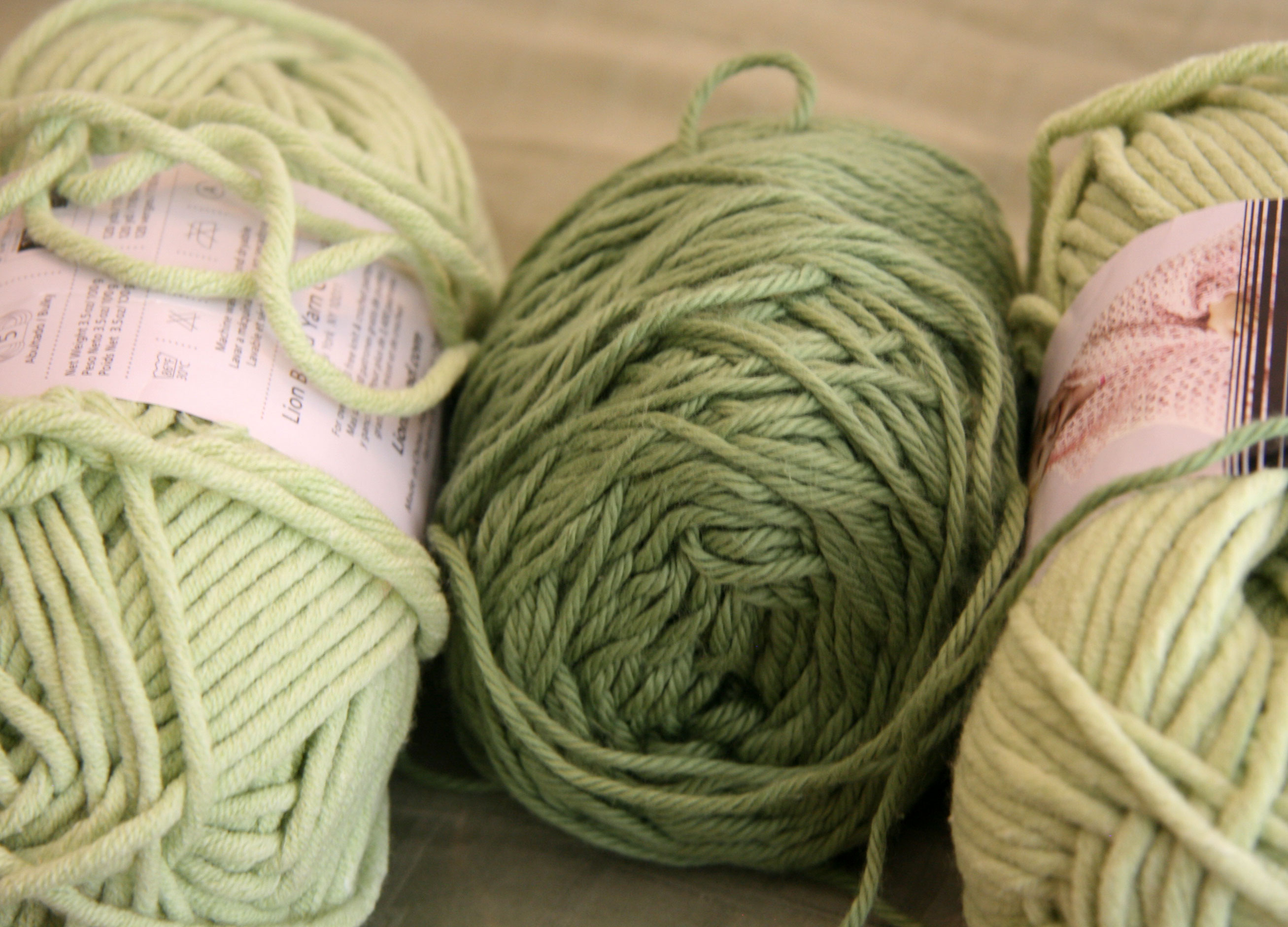 I looked around a little and found a blog where there were tutorials for both an arm knitted scarf and an arm knitted blanket. Of course, I wanted to jump in and immediately knit a blanket. But then I actually stopped to think for a moment and decided that maybe I should not begin with quite such an ambitious project which would also require me to buy yarn. I realized that I had the yarn in my stash to knit a scarf. I found two skeins of chunky cotton/acrylic and a skein of worsted weight cotton.
