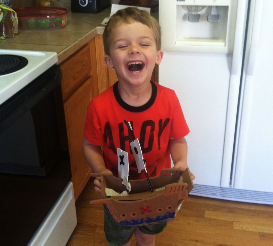1. That smiling face says it was a GREAT success. Sometimes it’s the process, not the end product. Bet he ends up playing with this one more than if it were perfect. It looks like a great pirate ship for an imagination to take run!