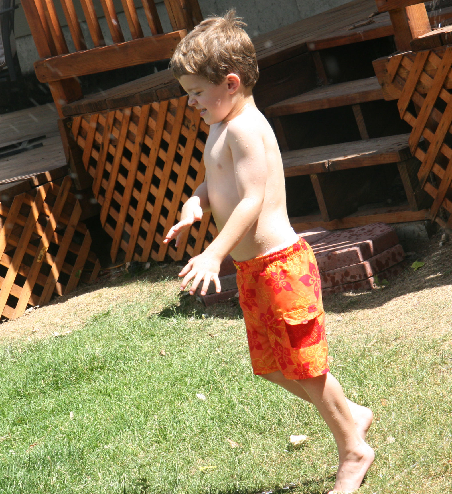 It’s been pretty hot here lately, so the other day we picked up a new sprinkler for Davey to play in. I guess I have never become completely acclimated to Colorado summers. I am not convinced that it is ever hot enough in this state to play in the water outside. It may be bright and sunny, but the air is so dry that when I come out of the water, I am always cold.