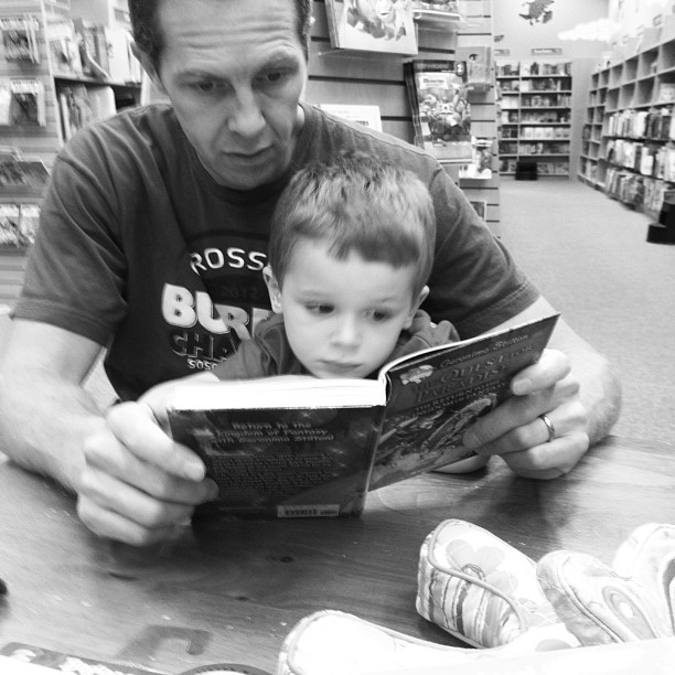 We enjoyed a peaceful day yesterday. We went to Barnes and Noble and got Davey the next Geronimo Stilton book in the Kingdom of Fantasy series. We are working into books that are not strictly picture books (although Davey still loves them too). Geronimo Stilton is proving to be a lot of fun because it is very interactive (some puzzles, games etc), and it also has illustrations. I highly recommend it. David and Davey settled in for a bit and read together at the bookstore.