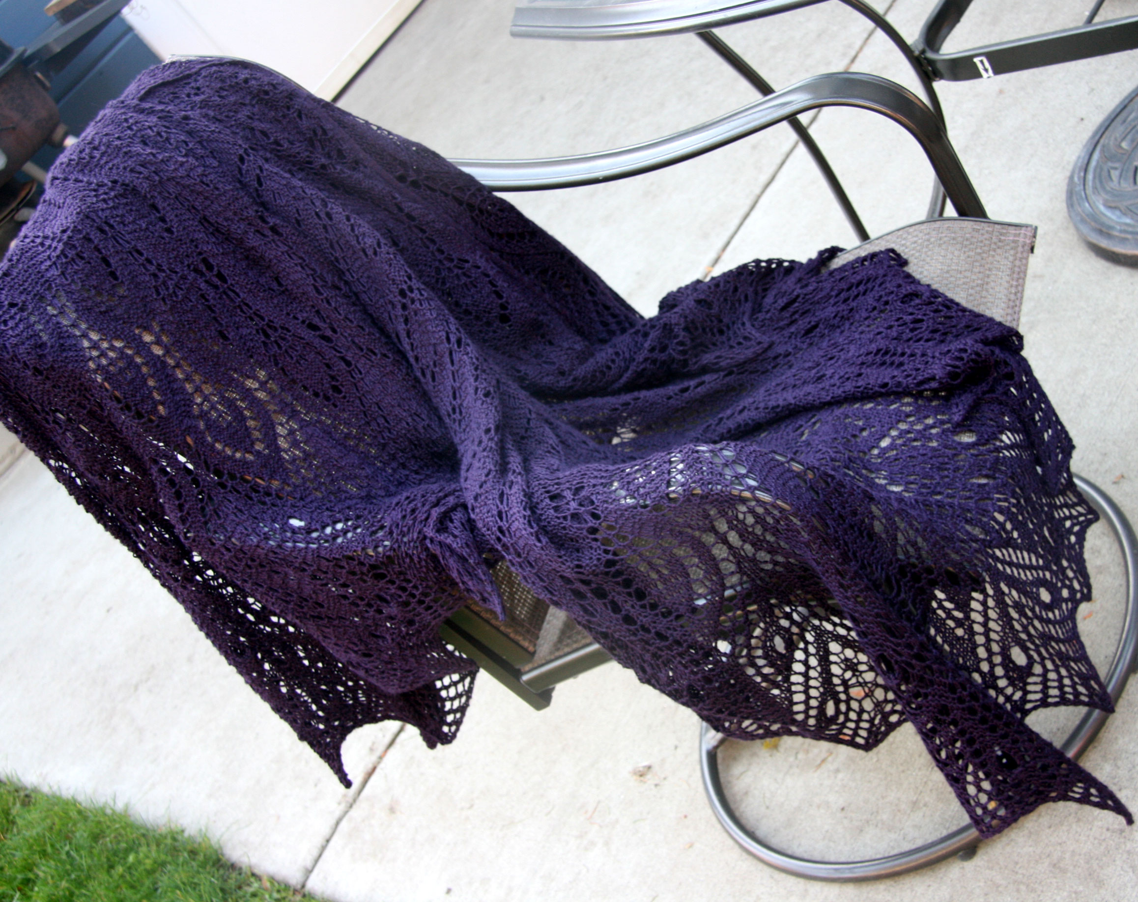 I began it back in April. I knitted it through 6 seasons of “How I Met Your Mother”, a couple of seasons of “Justified”, couple of seasons of “Hell on Wheels”, couple of seasons of “Longmire”, a season of “Homeland”, and then just lots more evening knitting. I took some breaks from it to make some baby things and a couple of other projects, but they were mostly pretty quick, and then I was back to this shawl.