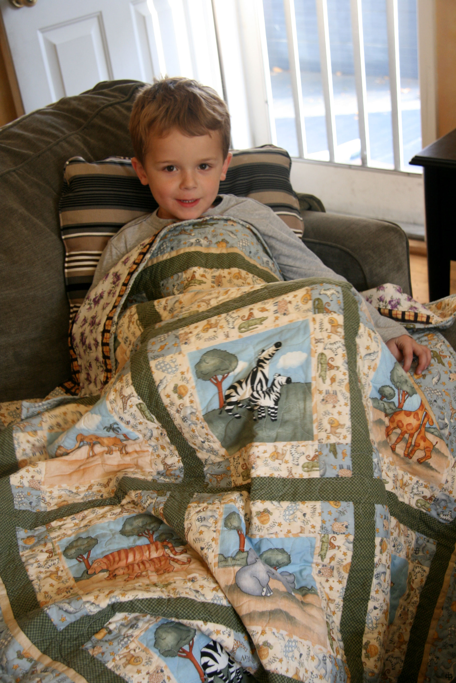 And finally, we got a total surprise in the mail this week.  A friend sent Davey a quilt she made.  It’s so pretty, and Davey is just in love with it.  It has a flannel backing, and it’s just so warm and cosy.  He sleeps with it at night, and then he brings it to the couch in the morning.