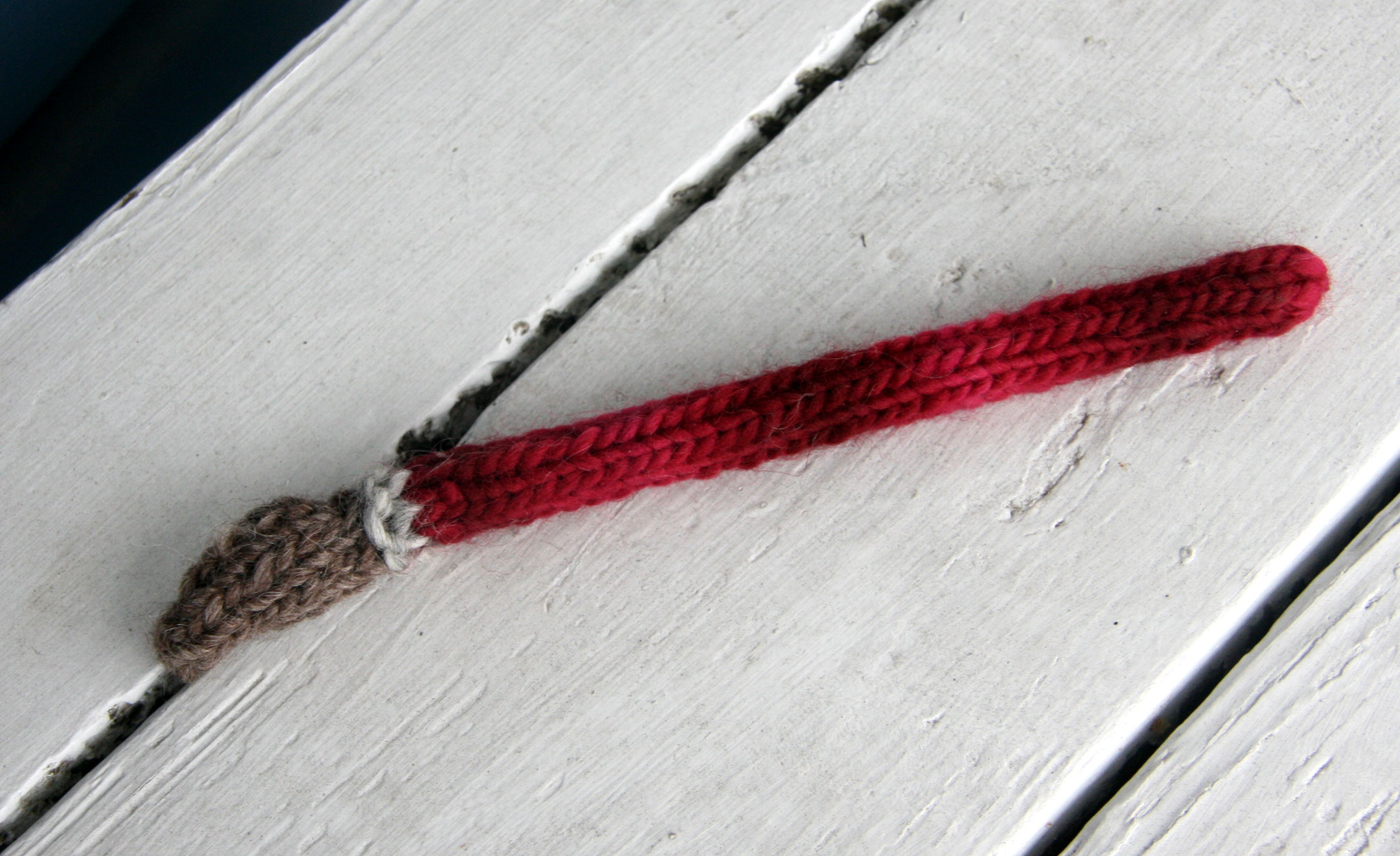 I almost forgot one of my favorite parts.  The tube of paint has “retractable paint”.  I knit an icord and you can pull it out of the tube and then push it back in!  The pattern also gives the option of leaving the bottom open and putting in a snap so that you could easily pull the cord from the bottom.